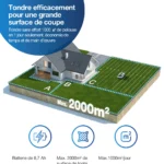 Recharge Ultra-rapide en 45 mins. Le robot peut couvrir 500 ㎡ de terrain en seulement 2 heures, y compris le temps de recharge.