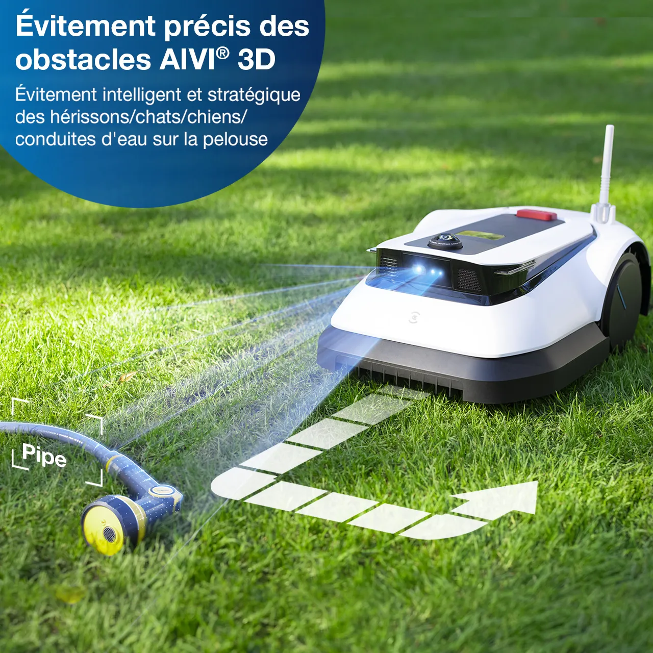 • La fonction d’évitement d’obstacles AIVI 3D permet une tonte plus sûre et plus agréable.