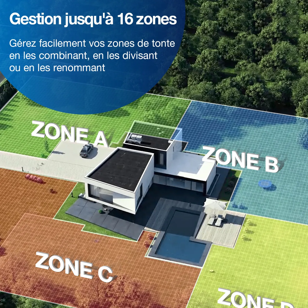• La planification intelligente de trajectoire garantit une efficacité de tonte élevée pour une pelouse bien entretenue.